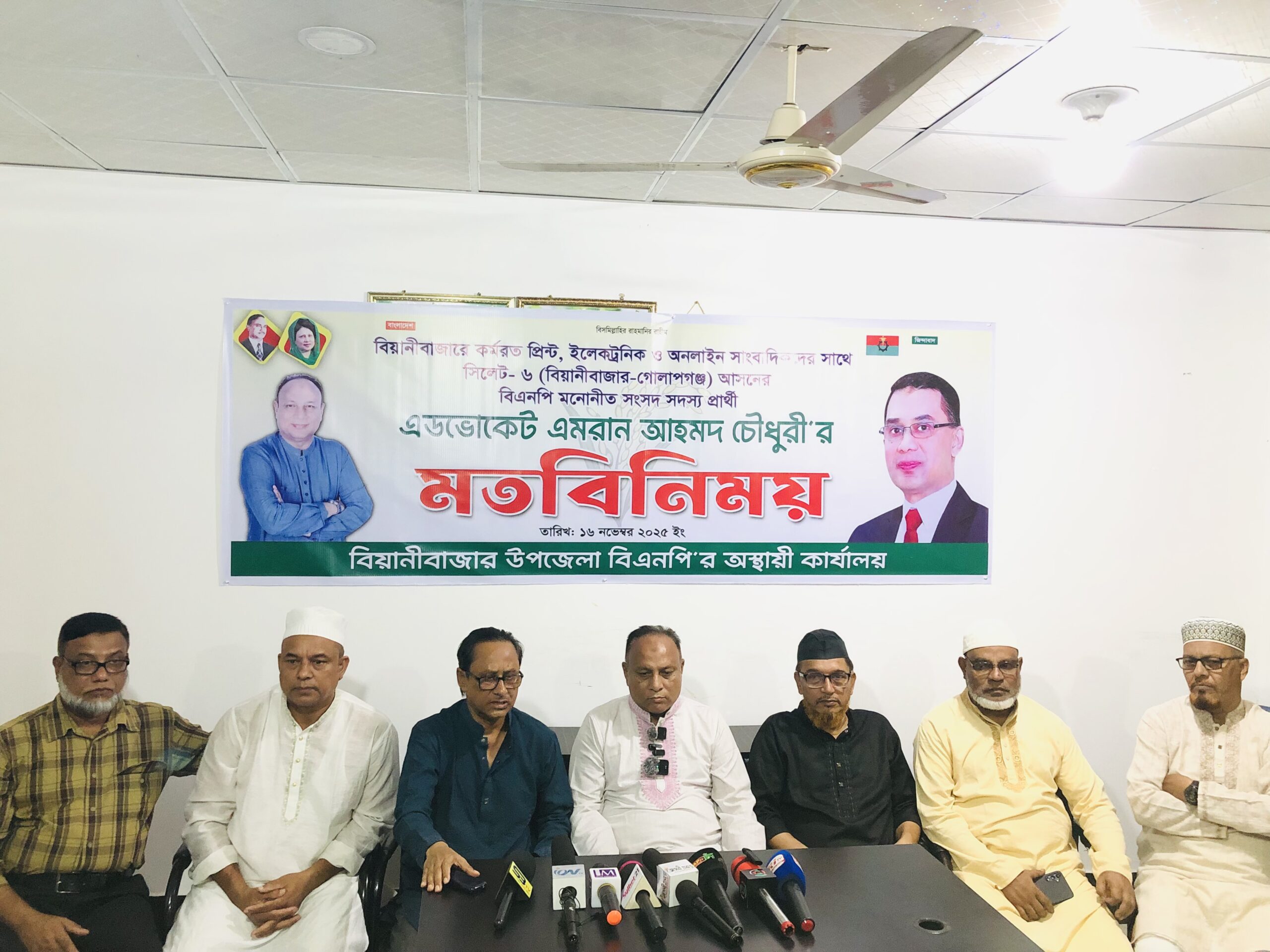 বিয়ানীবাজারের সাংবাদিকদের সাথে মতবিনিময় সভায় সহযোগিতা চাইলেন অ্যাড. এমরান আহমদ চৌধুরী