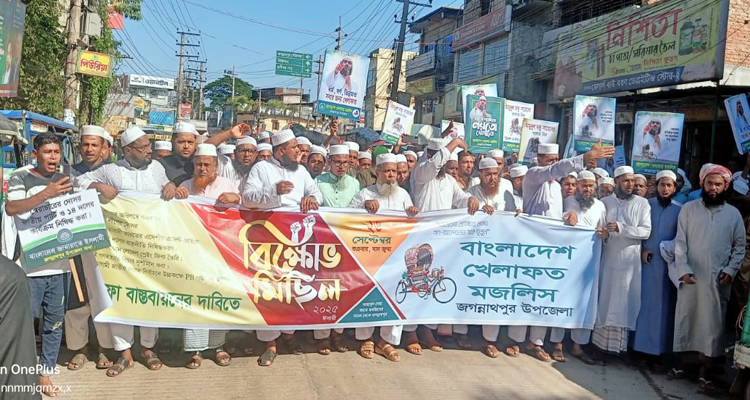 বাংলাদেশ খেলাফত মজলিস জগন্নাথপুর উপজেলা শাখার উদ্যোগে কেন্দ্রীয় কর্মসূচির অংশ হিসেবে ৫ দফা কর্মসূচি জুলাই সনদের অবিলম্বে বাস্তবায়ন, জাতীয় পার্টি