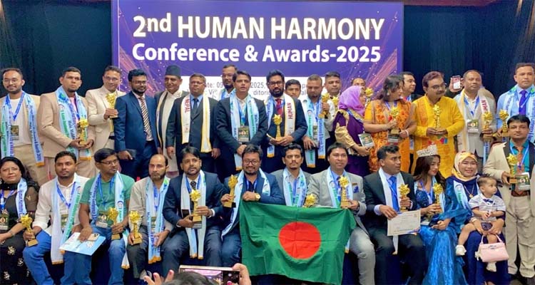এশিয়ান বিজনেস পার্টনারশিপ সামিট আয়োজিত ‘হিউম্যান হারমনি কনফারেন্স অ্যান্ড অ্যাওয়ার্ড ২০২৫’-এ মানবসম্প্রীতি ও উন্নয়নমূলক কর্মকাণ্ডে অবদানের জন্য ৯ বাংলাদেশি প্রবাসীকে